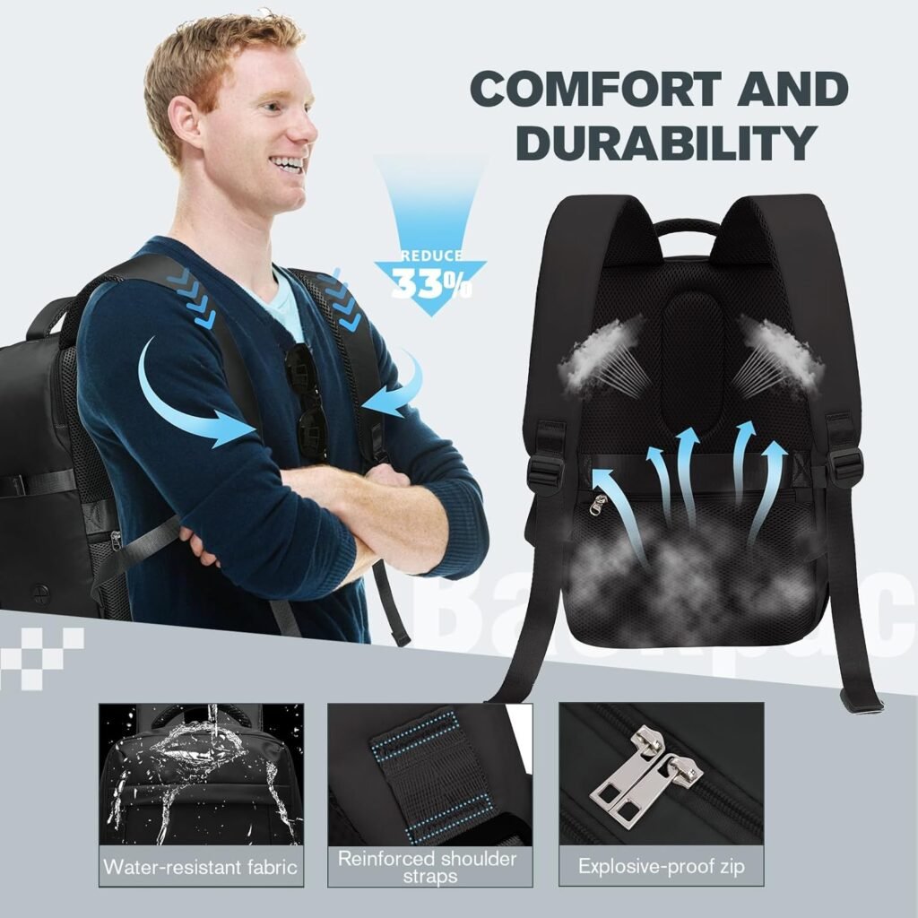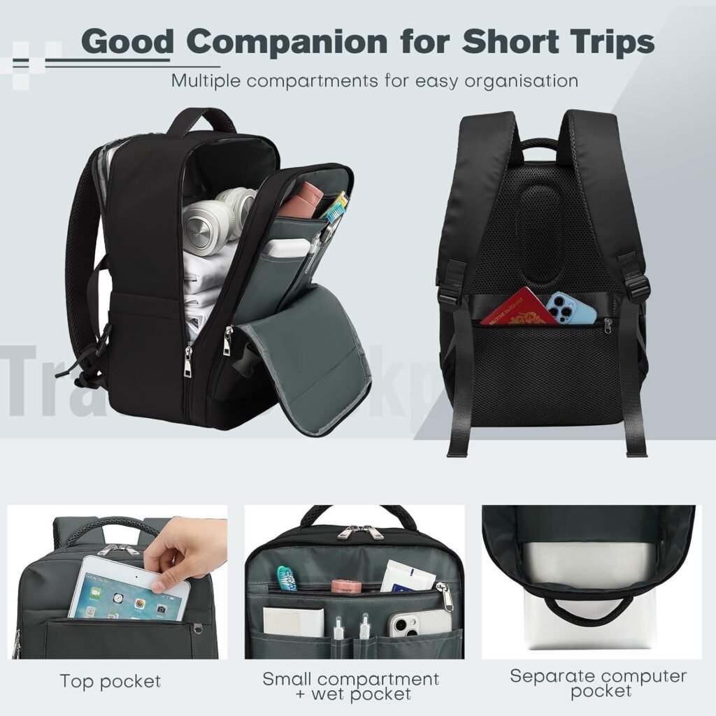 - 【Mochila de cabina multifuncional】Esta mochila viagem tiene un práctico orificio para cables en el lado derecho, un bols…